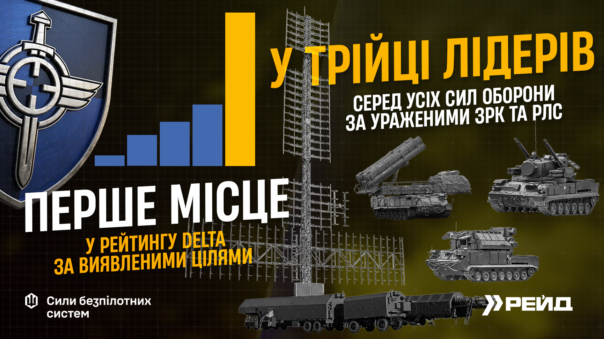 Також за березень оператори 413 полку знищили 9 зенітно-ракетних комплексів та 14 радіолокаційних станцій – чверть від загального результату всіх Сил безпілотних систем. За цим показником «Рейд» увійшов до трійки найрезультативніших у Силах оборони за рейтингом Delta.